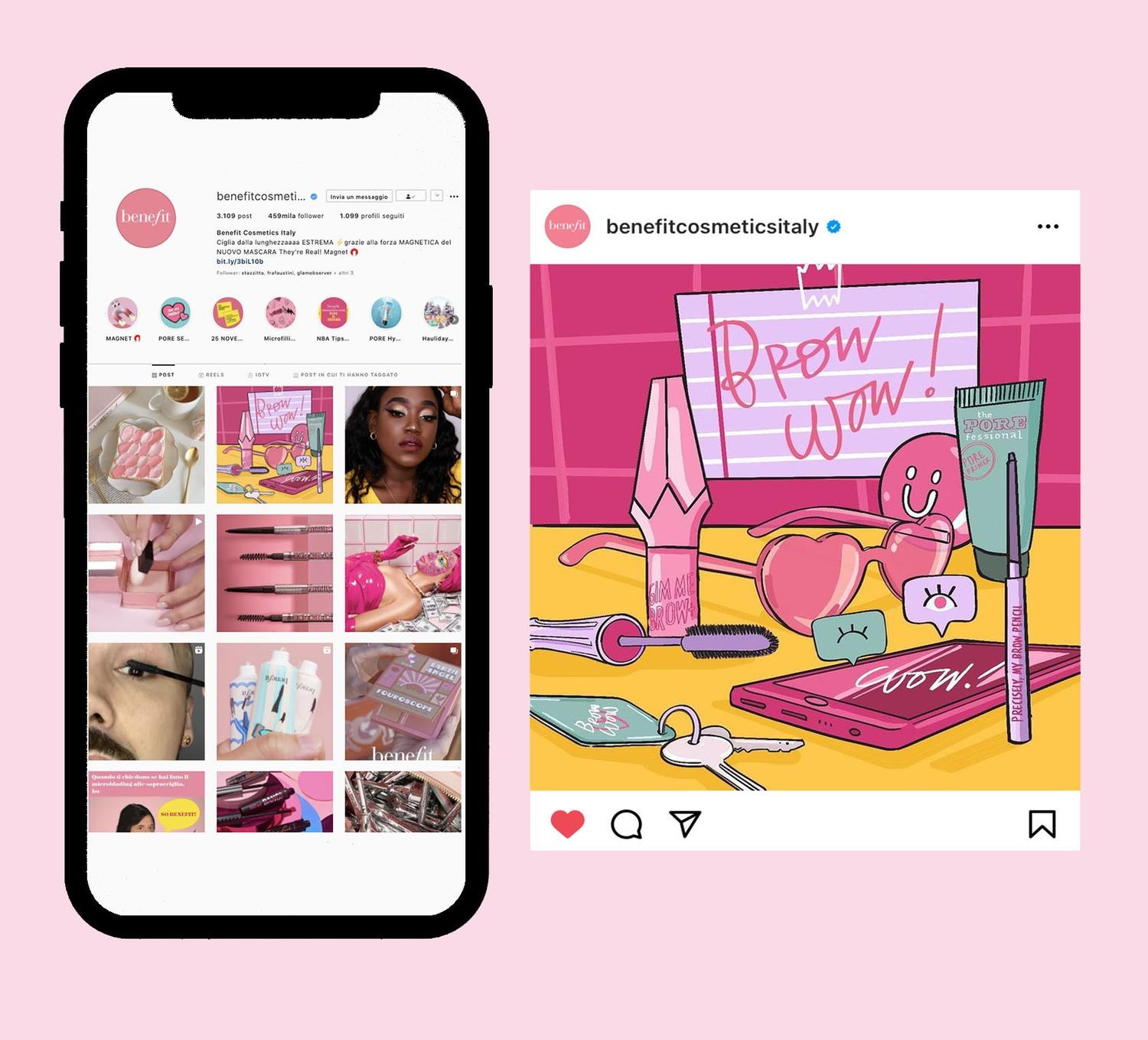 I created illustrations for Benefit Cosmetics Italia’s 2021 campaign in collaboration with Sephora. The visuals were used across the brand’s digital content and were based on the BROW WOW Box campaign concept.