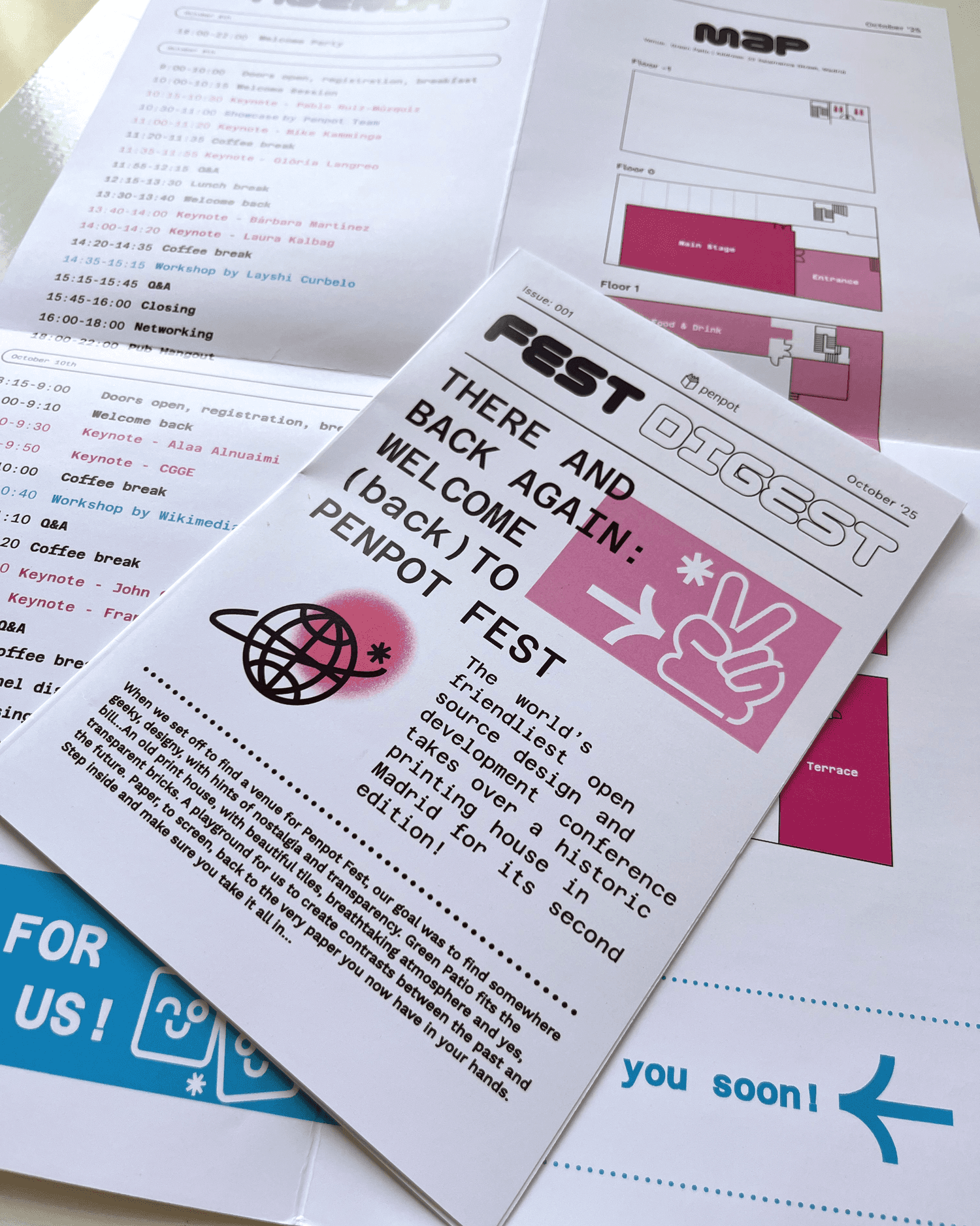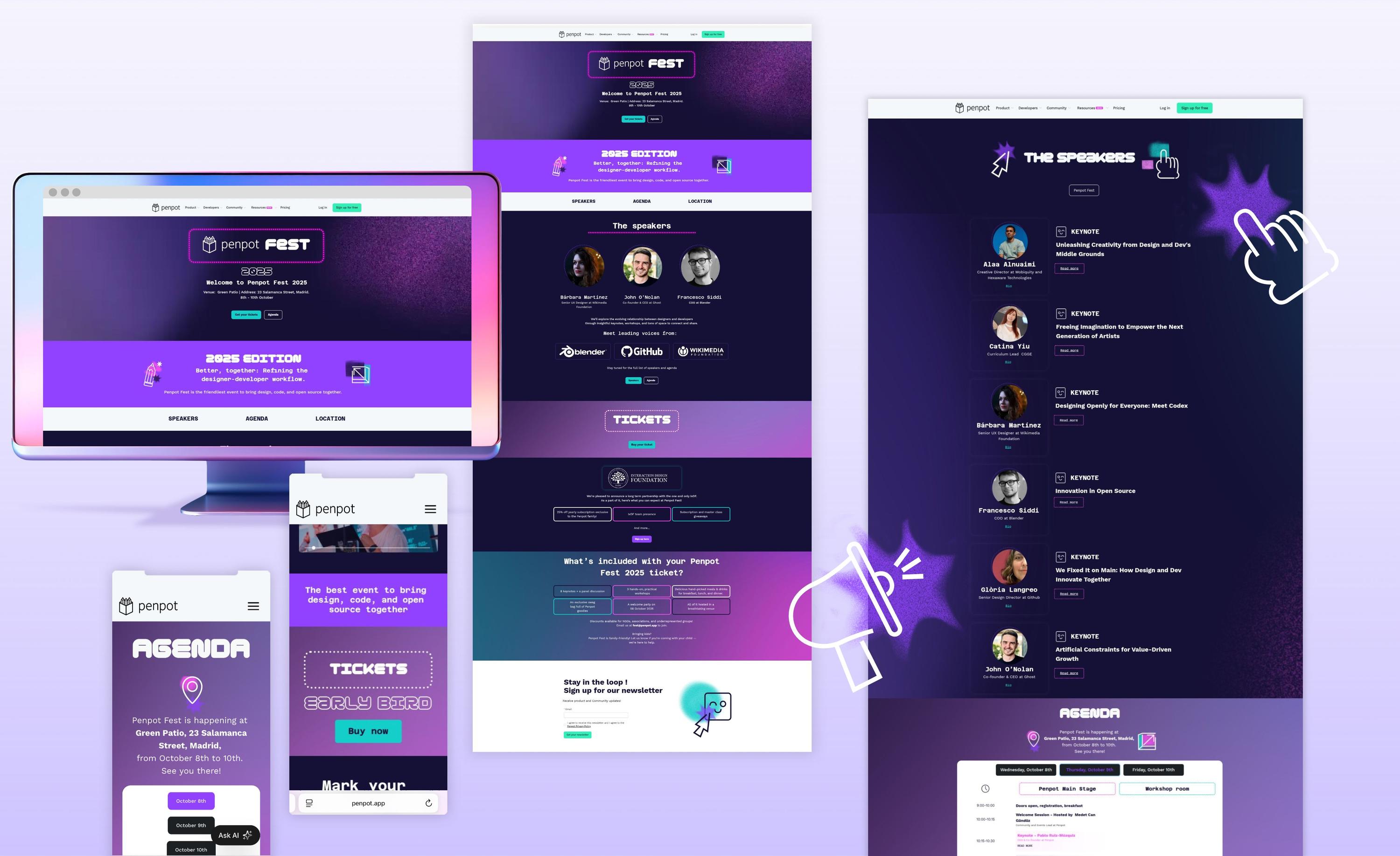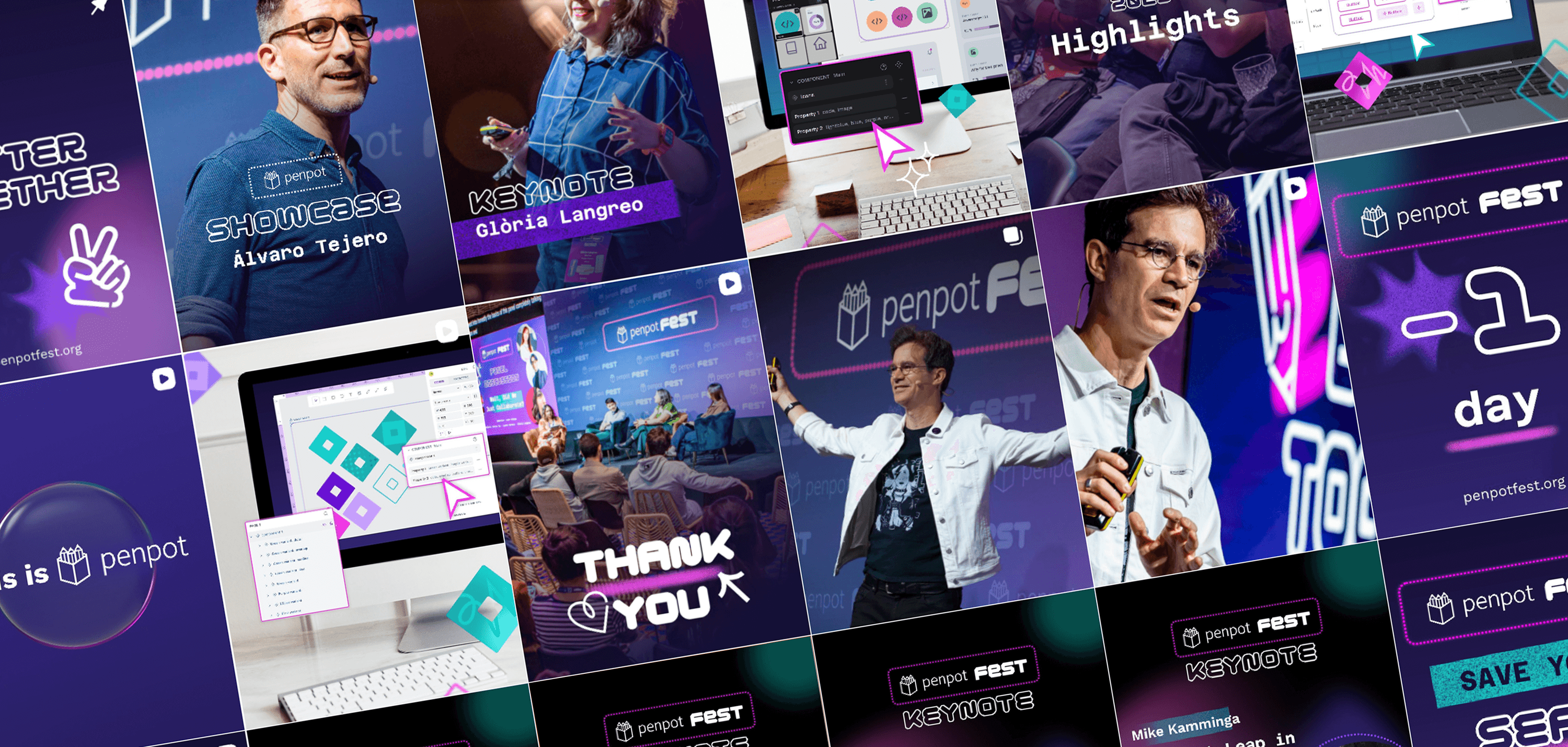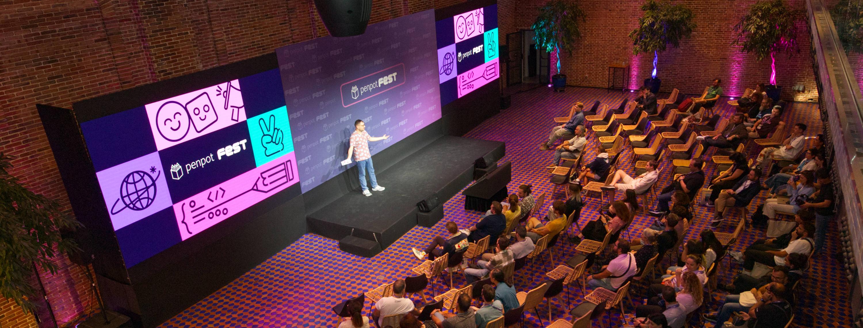 I led the creative direction for the Penpot Fest brand identity and visual system, a two-day tech event in Madrid. I designed the full brand identity, executed all static visual assets, oversaw production, and coordinated with the motion graphics team for video content and presentations. I also handled the website design and social media visuals in the month leading up to the event and during the festival itself.